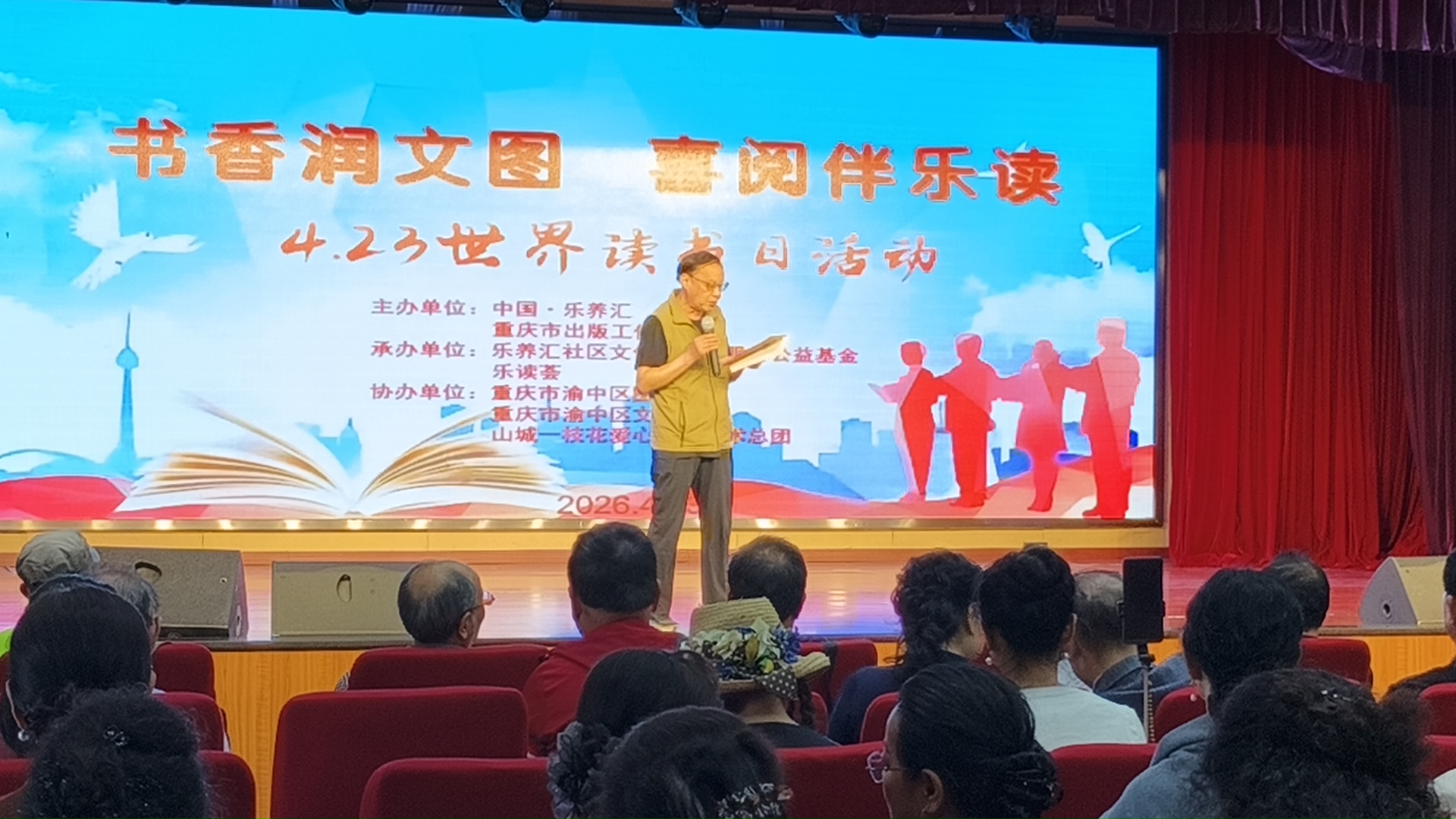 在第31个世界读书日来临之际,4月23日,重庆市出版工作者协会、渝中区图书馆联合主办“书香润文图,喜悦伴乐读”主题公益读书活动。民进会员邓义胜受邀参会,并作《重读<重庆抗战文化品牌城市营销导论>新感》主题演讲,演讲内容真挚厚重、干货满满,现场氛围热烈,赢得在场听众阵阵热烈掌声。