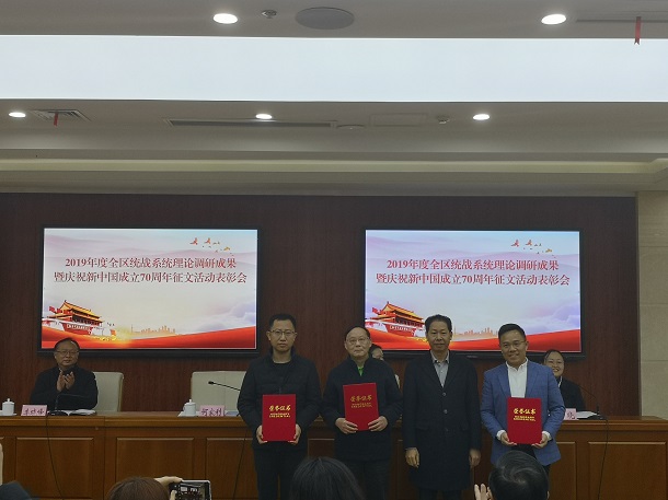 邓义胜(左二)获渝中区统战系统庆祝中华人民共和国成立70周年征文比赛特等奖