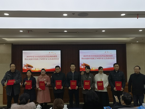 近日,中共渝中区委统战部对区统战系统庆祝中华人民共和国成立70周年征文比赛获奖作品进行了表彰,渝中区4名民进会员撰写的征文获奖。其中邓义胜荣获特等奖,郭莉荣获二等奖,谢万红、张小飞荣获三等奖。