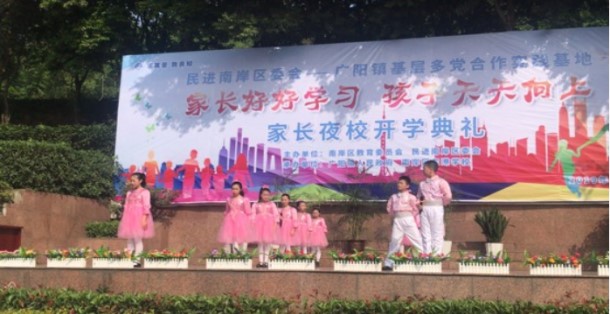 图为“美声音”为民进南岸区委会广阳镇多党合作实践基地家长夜校开学典礼排演的儿童文艺节目