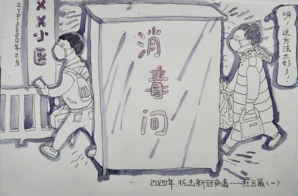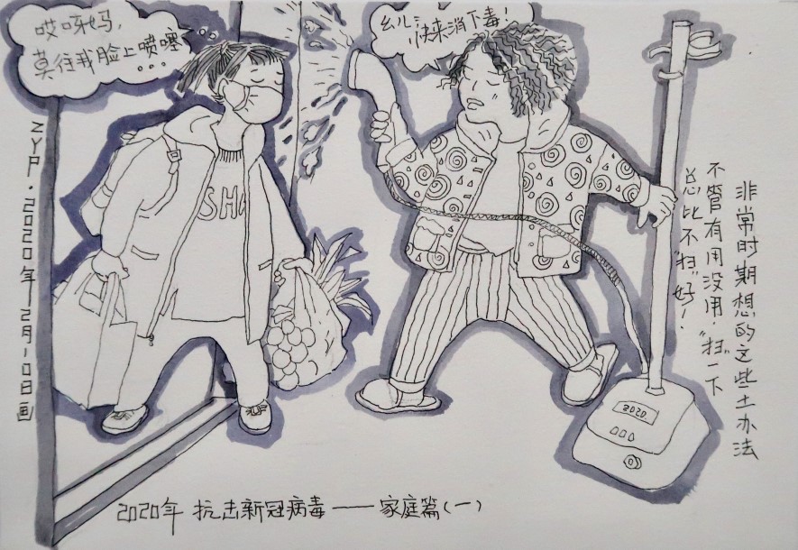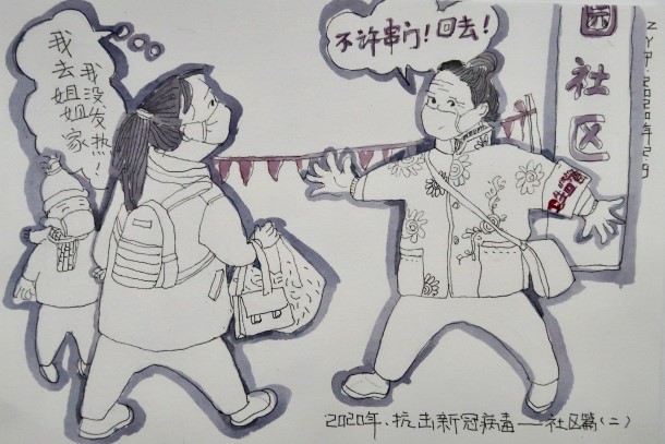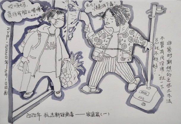 “幺儿,快来消下毒!”“唉呀妈,莫往我脸上喷噻!”近日来,一组栩栩如生的漫画图在重庆江北区观音桥小学师生和家长中热传。13张漫画,有的描绘着疫情下“宅生活”的乐趣,有的展示当下医生最酷最潮发型,还有的记录了社区防疫情景。画面简单,温馨风趣,用最直白的方式向广大师生宣传防疫知识。