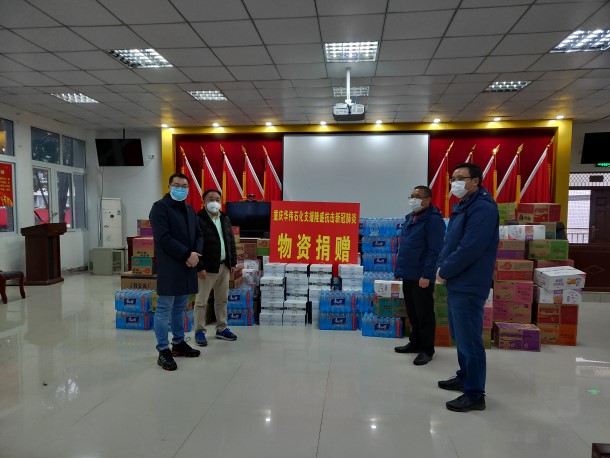 为积极响应区委统战部发起的“同心抗疫,共克时艰”主题活动,2月15日,綦江区民进会员、重庆华伟石化有限公司董事长袁小伟一行来到隆盛镇,为隆盛镇疫情防控一线人员送去酒精、方便面、牛奶、矿泉水等总价值2万余元的防疫物资。中共綦江区委常委、统战部长钟远平应邀出席捐赠仪式。