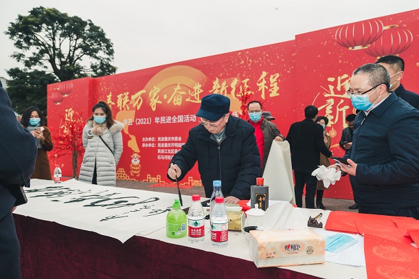 据悉,“春联万家”活动是民进已坚持开展了多年的社会服务品牌活动。本次活动由民进重庆市委会主办,民进重庆开明画院、民进江北区委会、江北区石马河街道共同承办,共送出春联200余幅,送出福字100余张,送出年画100余张。