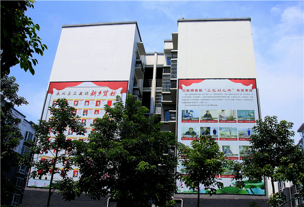 民进永川区委依托三教“美名、美景、美食、美品、美人、美事”六美特色,深挖“儒道佛”三教合一文化底蕴,创意策划了以“和合三教·美丽小镇”为主题的街道。“和合”是中华文明的核心要素,围绕这一主线创意策划,力求以文化人,以德润心,以亲切而真实可见的方式,形象地表达 “立足中华优秀传统文化,培育和弘扬社会主义核心价值观”。街道两旁,一边是三教镇本土文化展示,一边是社会主义核心价值观及乡贤文化展示,小大相映成趣,古今继往开来,实现了将历史性与当代性相统一,将中华传统美德与当代社会主义核心价值观建设相衔接。创建以来,不仅吸引了大量本地人驻足观看,还引来了区内外的有关领导及游客参观视察,收到了意想不到的宣传效果。