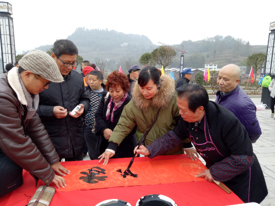 神猴辞岁,金凤迎春。值此新春佳节来临之际,民进北碚区工委组织会员并邀请北碚缙云书画院书法家,于2017年1月7日在北碚区金刀峡镇开展了“春联万家”活动,受到当地群众欢迎。