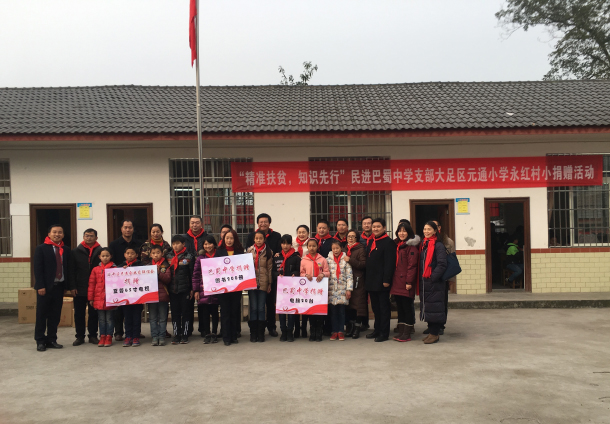 据悉,位于大足区邮亭镇的永红小学仅有5个年级,缺少教学设施和图书。民进巴蜀中学支部此次捐赠活动,不但为永红小学提供了物资上的及时帮助,通过与学校教师的座谈交流,也提高了当地教学水平,体现了民进人“精准扶贫,知识育人”的理念。