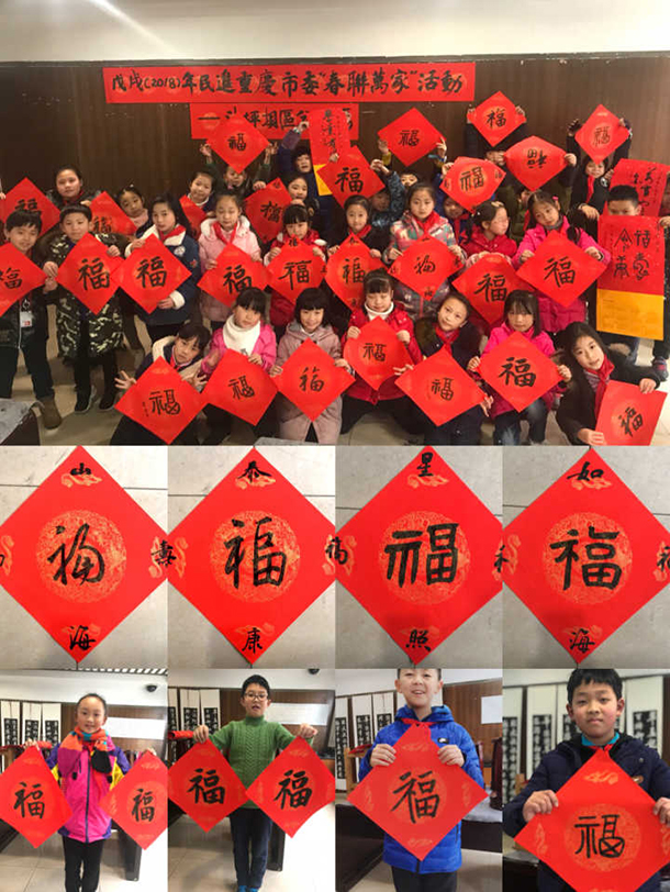 1月19日,民进沙坪坝区委分别在重庆市树人小学、树人凤天小学设立分会场,以艺术课堂的形式开展民进重庆市委2018(戊戌年)“春联万家”沙坪坝区分会场活动。