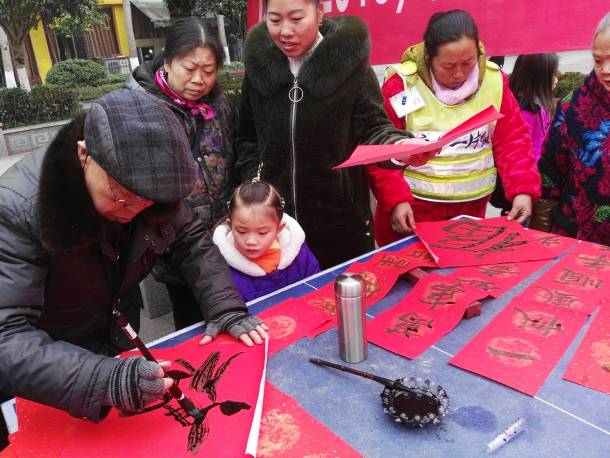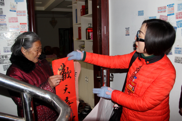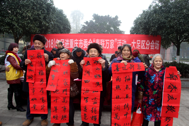 在社区干部的带领下,民进大足区委还把写好的春联送到老年群众的家中。虽然户外气温寒冷,但民进人把温暖和祝福送到了群众的心坎上。