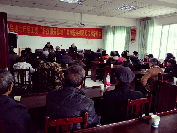 1月30日,民进重庆市北碚区工委会“科技服务基地”正式落户北碚三圣镇卫东村。区工委会副主委王吉德为卫东村“科技服务基地”授牌。