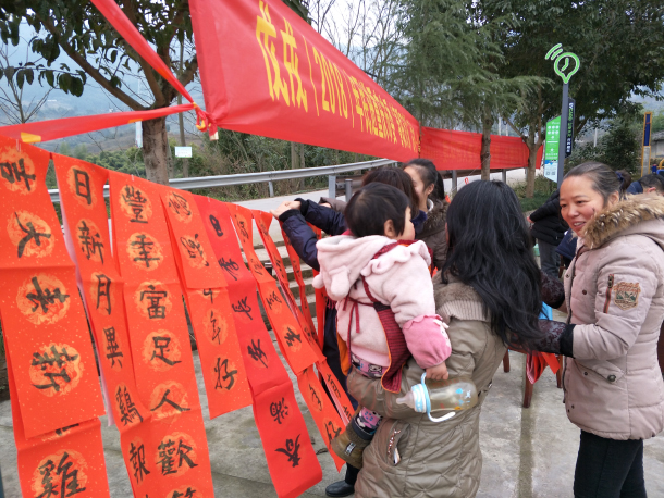 1月30日下午,民进北碚区工委会赴三圣镇卫东村开展“春联万家”文化下乡活动。由西南大学一支部主委徐恢忡担任组长的科技组带来了农业科技培训课;综合支部副主委常杭花率医疗小组开展了医疗咨询服务;重庆民进开明画院副院长、江北区文联副主席王明义,重庆民进开明画院理事、书法家周义东等艺术家则挥毫泼墨,现场为村民题写春联。