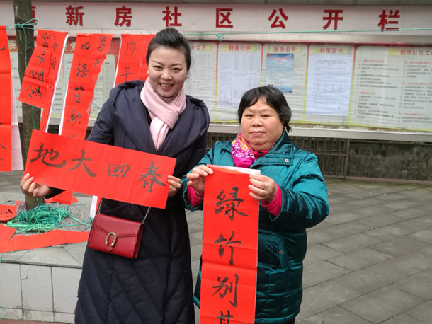 据悉,这是民进綦江区委会今年组织参与的第三场送春联活动,共向居民赠送春联500余副。该活动弘扬中国传统文化,展示书法艺术魅力,营造新春喜庆祥和的气氛,受到群众一致欢迎。