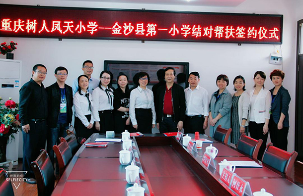 民进重庆市委会积极响应民进中央“同心·彩虹行动”,开展以智力帮扶为主的精准扶贫活动,以当地实际需求为出发点,促成重庆树人凤天小学与贵州省金沙县第一小学签订为期三年的对口帮扶协议。