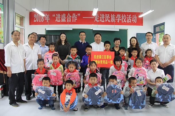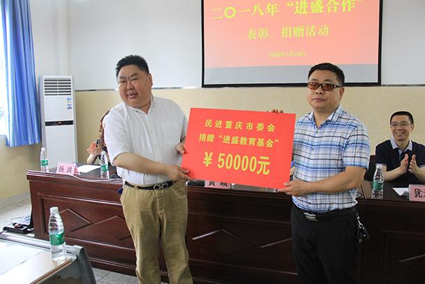 在进盛实验中学举行的表彰、捐赠仪式上,黄硕代表民进市委会,向万盛民族学校和进盛实验中学捐赠体育器材和办公用品,表彰奖励了12名“进盛教育之星”优秀教师和20名优秀贫困学生。民进綦江区委会也向进盛实验中学捐赠了一批体育器材和办公用品。