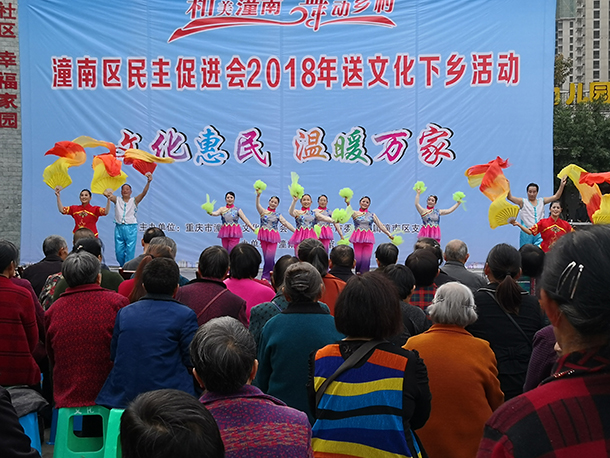 为弘扬民进光荣传统,丰富群众文化生活,10月29日下午,民进重庆市委直属潼南区支部在桂林街道办事处东风社区开展了“2018年送文化下乡活动”。