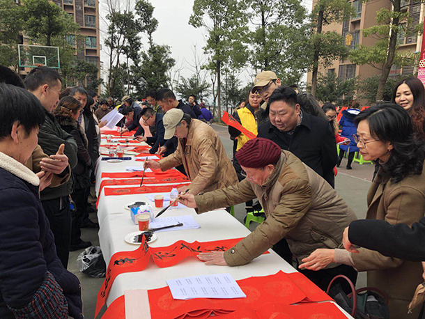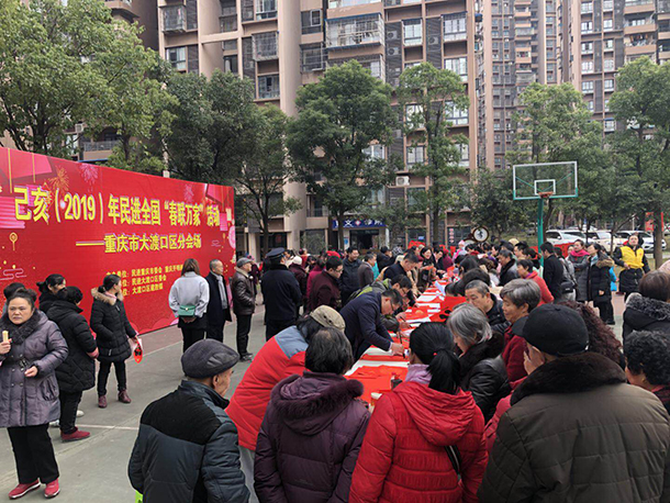 据不完全统计,此次活动共送出400多副对联、300多个福字、100多张年画。据了解,为传承和发扬中华优秀传统文化,弘扬社会主义核心价值观,助力国家文化建设,促进广大居民对传统文化的继承和理解楹联艺术,民进重庆市委会根据民进中央的统一安排和部署,充分发挥文化优势服务社会,通过书法名家送春联到基层的形式表达了民进对居民朋友们良好的新年祝愿。