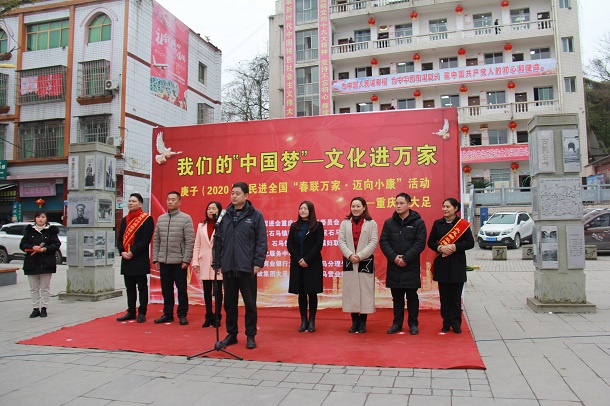 1月15日上午,由民进大足区委会和中共石马镇党委政府主办的“庚子(2020)年民进全国“春联万家·迈向小康”活动在石马镇广场举行,为老百姓免费书写春联,送上新春祝福。区政协副主席、民进大足区委会主委李志亲临活动现场指导。