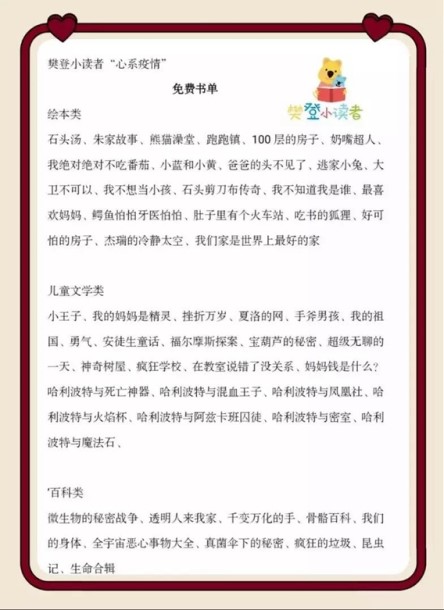 樊登小读者“心系疫情”栏目部分内容:“免费书单”和“新型冠状病毒科学小常识” 主办方供图