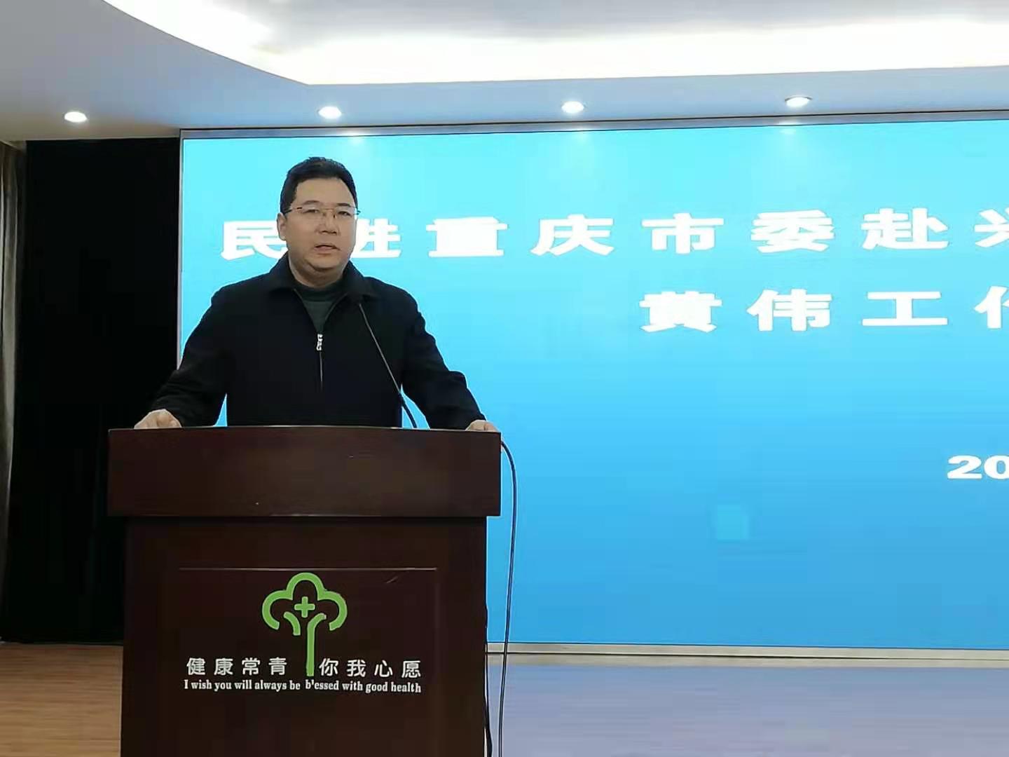 12月7日,民进重庆市委会赴贵州省黔西南州兴义市人民医院开展黄伟工作室揭牌仪式和专科医疗帮扶活动。民进重庆市委会秘书长罗挺,民进重庆市委会常委、重庆医科大学附属第一医院骨科主任、教授、博士生导师黄伟出席活动。