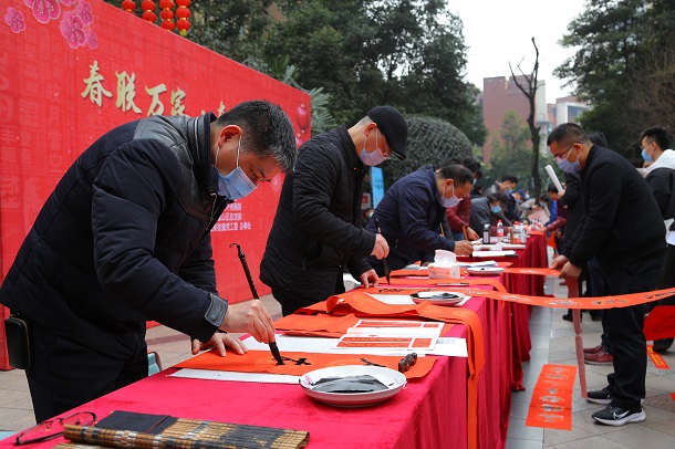 2月8日,民进重庆市璧山区总支部联合璧泉街道党工委,在璧南河一号小区开展了“春联万家·奋进新征程”送福写春联活动,一笔一划,洋洋洒洒,字里行间传递着对新年万象更新的期盼。