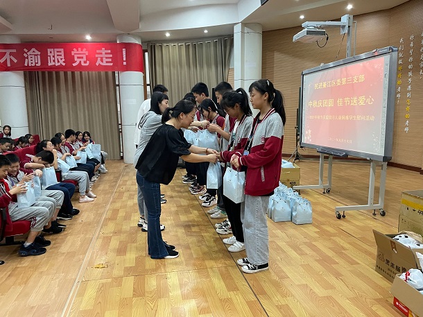 9月17日下午,民进重庆市綦江区第三支部和万盛经开区溱州中学校团委联合开展了“中秋庆团圆·佳节送爱心”关爱慰问活动,为部分家庭困难、残疾、孤独儿童和留守儿童等特殊学生群体送上一份来自民进组织的关爱和温暖,和他们共度温馨快乐的传统佳节。