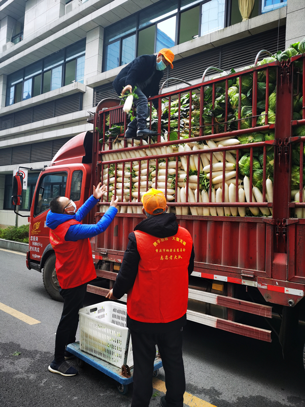 银代明带领慈善志愿者在人民医院卸蔬菜