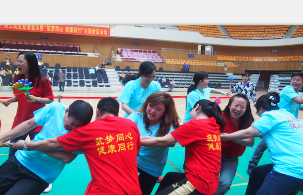 活动中,民进和农工党的成员们分成四个小队,开展了拔河比赛、走木板鞋、舞蹈表演、足式保龄、歌曲联唱等体育趣味比赛和文娱表演活动。甘红与民进会员邱雪的即兴表演“一个美丽的地方”将活动推向了高潮。