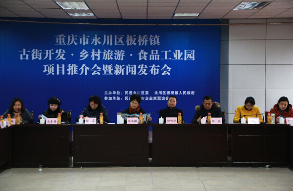 12月18日下午,民进永川区委与永川区板桥镇政府联合主办了板桥镇古街开发·乡村旅游·食品工业园项目推介会暨新闻发布会,来自重庆民进企业家联谊会和民进永川区委的30余名民进企业家前来参观考察,寻觅商机,并为该镇项目开发建言献策。市政协常委、民进市委专职副主委张克敏,区政协副主席、民进永川区委主委钟代华参加活动。