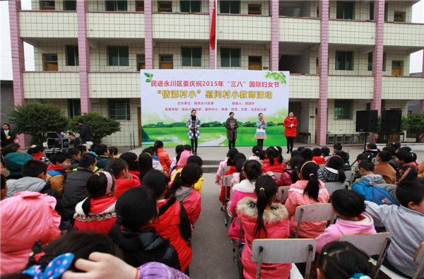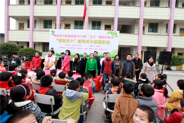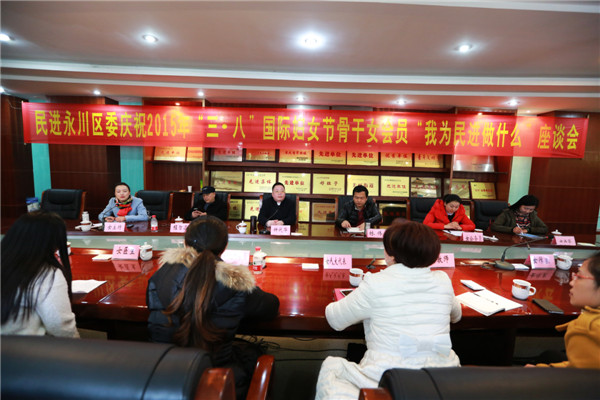 2015年3月4日,在“三八”国际妇女节即将到来之际,民进永川区委组织骨干女会员,开展了送一套慰问品,作一场《乡村教育与文化》主题演讲,献一歌一曲一舞一诗一画一故事,开一次“我为民进做什么”座谈会“九个一”庆“三八”活动。区政协副主席、民进永川区委主委钟代华参加活动。