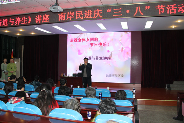 2015年3月8日,值第105个“三八”妇女节之际,民进南岸区委特邀茶艺专家为女会员们举办了《茶道与养生》讲座。南岸区副区长、民进南岸区委主委莫裕全,副主委肖辉、王传霞、李卫国出席讲座。