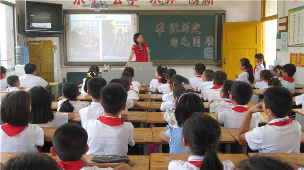 9月1日上午,响亮而铿锵的朗诵声从大足区实验小学五年级四班学生教室里传出。这是民进实验小学支部结合工作实际,开展纪念中国人民抗日战争胜利暨世界反法西斯战争胜利70周年主题活动。活动中,民进会员陶廷梅老师向学生简要介绍了世界反法西斯战争,全体会员与学生一起观看了抗战纪录短片,共同回顾烽烟历史,缅怀抗战英烈,学习抗战精神。