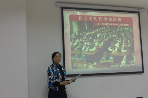 10月29日,民进区委专职副主委曹敏来到新一社区“放学来吧”,从“张飞问路,越问越远”和“乌江自刎”两个故事,引出了学习礼仪的重要性;从中华民族是礼仪之邦,讲到了现在的很多不文明现象。教导学生从自己的仪表、仪容和仪态开始做起,争做文明小学生,为孩子们献上了一堂生动有趣又实用的小学生礼仪课。