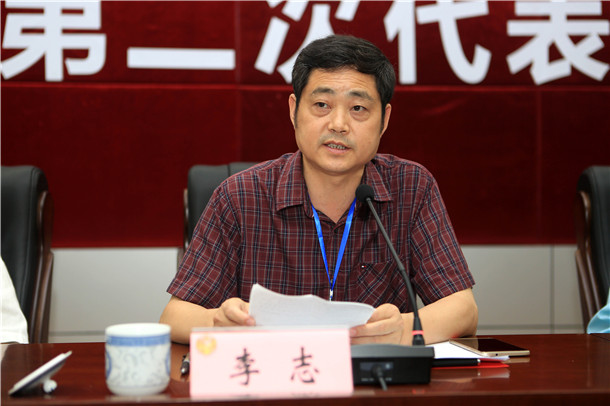 李志当选民进大足区第二届委员会主任委员。图为李志代表民进大足区第一届委员会作工作报告。