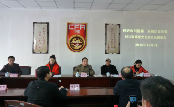 12月8日,民进永川区委、永川区文化委对口联系暨文艺界会员座谈会在区文化委会议室举行。区政协副主席、民进永川区委主委钟代华出席座谈会。