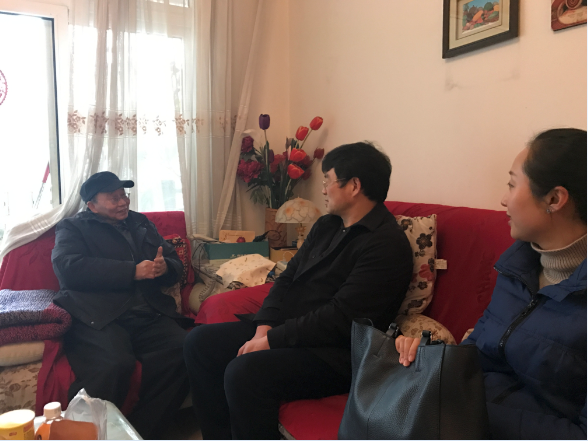 退休老干部张子昆原为民进江北区委主委,谢平主委与他进行了愉快的交谈,向他介绍了今年区委会开展工作的情况,两会中民进界别人大代表、政协委员的任职情况等,为老主委带去组织的问候并献上新春的祝福。