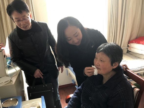 会员范钦宁,原为两江职教中心教师,于2008年中风瘫痪,至今一直卧病在床,生活不能自理,语言能力也基本丧失,但是当肖渝妹副主委代表民进组织慰问她,表达组织对她的关心时,她显得异常激动。照顾她的护工告诉我们,她虽然忘了很多人和事,但仍能记得民进,听到民进情绪就会波动。多年来,民进江北区委一直保持着对她的关心和帮助,区委会和支部每年都会前去探望。