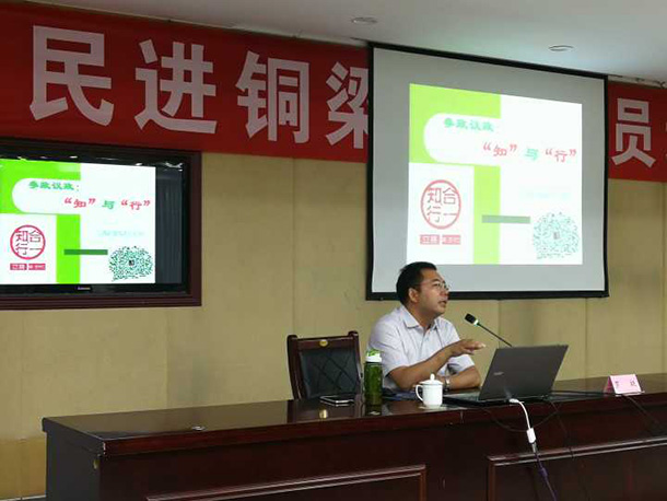 8月29日上午,民进铜梁支部在区委会议中心召开会员培训会,特邀民进重庆市委秘书长罗挺作专题讲座。区政协副主席、民进市委直属铜梁支部主委曹定福主持培训会,区委统战部常务副部长陶小平应邀出席会议。