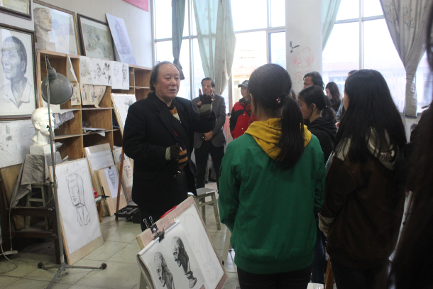 调研组一行听取了安富中学美术教师刘亚东执教的石膏头像写生课,并从素描画法、基础技巧等方面进行了指导,深受学生喜爱,在激发学生创作兴趣的同时,进一步提高了学生的绘画水平。