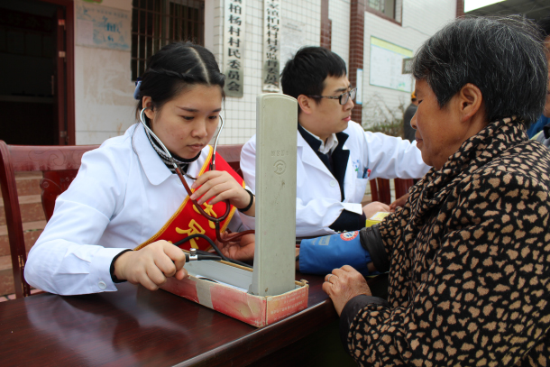 “老人家,你血压有点高哦,平时吃清淡些,降压药拿回去一定要按时吃。”区委会在柏杨村村委会办公楼前设置就诊台,来自大足区人民医院、大足区中医院的专家们为村民们义诊义检,并带去了企业界会员捐赠的常见病药品。村民们纷纷表示感谢,今年66岁的赵子英说:“谢谢你们专程来为我看病。”