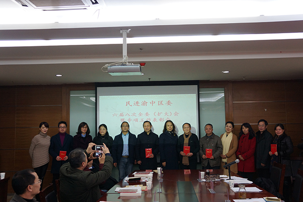 1月22日下午,民进渝中区委会召开六届八次全委(扩大)会暨专项工作表彰会,民进渝中区委会主委谭小兵,副主委李嘉婧、郭莉出席会议。中共渝中区委常委、统战部部长章琳应邀出席。会议由李嘉婧主持。