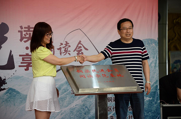 4月23日是第二十三个“世界读书日”。22日下午,民进市委会直属铜梁支部联合区图书馆、区作家协会和先知书社,在区图书馆举办了诵读会。同时,区图书馆挂牌成为“铜梁民进阅读示范基地”。全体民进会员现场诵读经典好书,感染和引导市民爱上阅读。