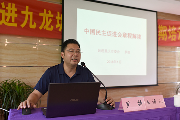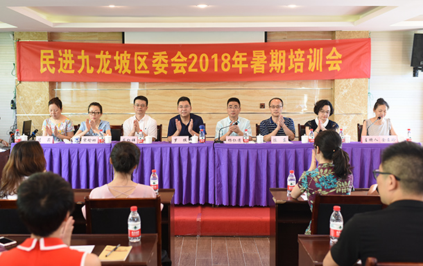 7月9至10日,民进九龙坡区委会2018年暑期培训会在白市驿召开。民进重庆市委会秘书长罗挺、中共九龙坡区委统战部常务副部长蔡仁祥出席并分别作辅导报告。民进区委会委员,会员中的人大代表、政协委员,各支部班子成员及新会员等近60人参加培训会。民进区委会主委、区政协副主席杨仁清主持会议。