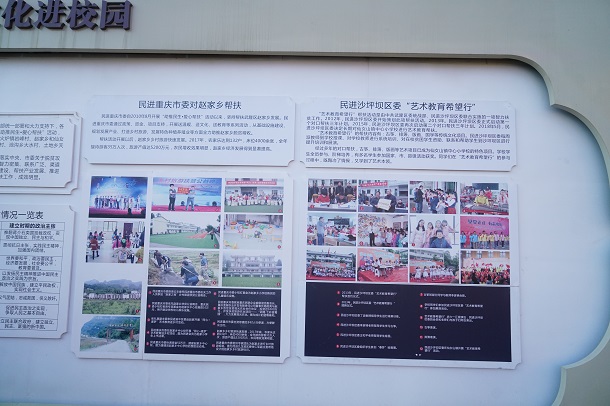 仙女山中心小学校园内的统战文化墙上记录了7年来民进“艺术教育希望行”活动带来的变化
