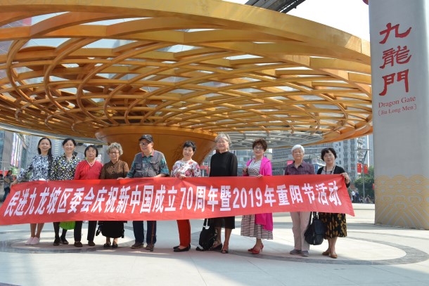 时值新中国70周年,九龙坡区城市风貌焕然一新。为了更直观感受九龙坡区的发展变化,余素珍陪着老会员们在步行街欣赏了“九龙印”“九龙门”等一系列新地标,向大家讲解新景观承载的“九心归一、龙行天下”的人文精神。老会员们欣喜地分享着九龙坡区令人瞩目的新变化、新形象,开心地合影留念。