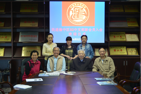 5月9日,民进渝中区50中学支部为两名新入会的会员举行了入会欢迎仪式。支部会员共10人,除1人旅居美国、1人出行上海、1人身体抱恙外,其余7人全部到会。