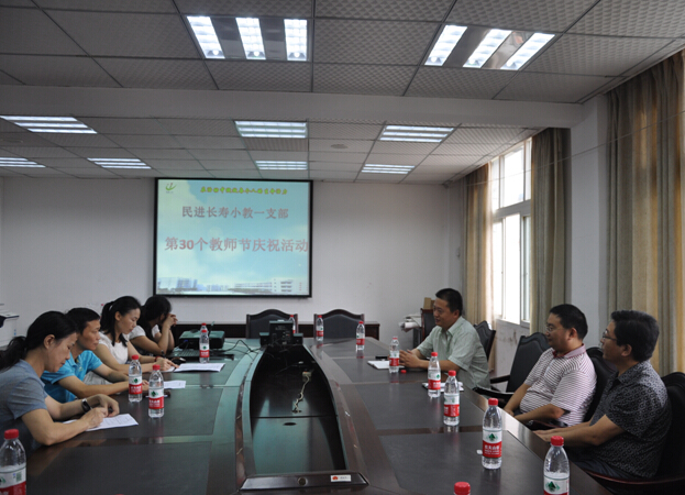 9月4日,民进长寿区小教一支部全体会员齐聚学校会议室,开展了庆祝第30个教师节的活动。区委会副主委吕兴建、邓雪峰,凤一小党总支书记、校长朱晓伟应邀参加了活动。