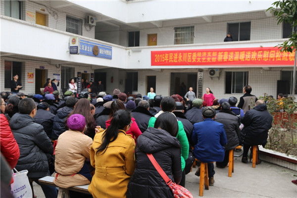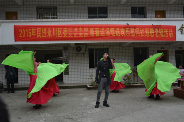 抬着年猪,提着糖果,带着节目,揣着祝福……2015年2月14日,民进永川区经济支部、文艺支部的会员在区政协副主席、民进永川区委主委钟代华的带领下来到松溉敬老院开展慰问活动,给老人们送温暖、送欢乐。