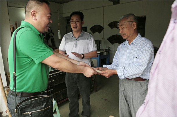 2015年5月14日,民进大足区文企支部会员先后赴非物质文化遗产大足竹雕生产性基地和大足石刻传说传承基地开展爱心捐赠活动。