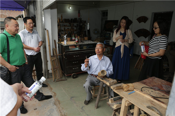 在大足竹雕生产性基地,会员们向大足竹雕传承人捐款,支部主委李涛鼓励传承人唐其能、蒋昌志等继续传徒授艺,努力让作品走向市场,逐渐实现生产规模化。来自区非遗中心的会员黄剑武介绍了大足竹雕发展情况,会员们纷纷献计献策,鼓励大足竹雕传承人为大足区的文化事业的发展多做贡献。