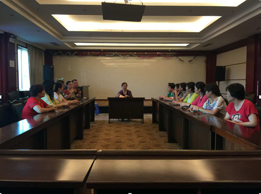 刚住进宾馆,陈启红老师叫大家把行李放下,十分钟后到宾馆的七楼会议室开会。因为没有开空调,大家热得挥汗如雨,但没有一个人有一声抱怨。陈启红老师传达了2016年6月23日中国民主促进会重庆市南岸区第六次代表大会的内容,介绍了当选的新一届区委组成成员,大家热烈鼓掌,纷纷表示要继续在民进南岸区委主委莫裕全的领导下,发扬传统,凝聚共识,凝聚智慧,凝聚力量,努力为“科学发展,富民兴渝”和率先全面建成小康社会做出新的更大的贡献。
