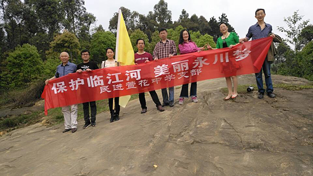 4月8日,民进萱花中学支部在茶山步道开展了“保护临江河 美丽永川梦”宣传活动。